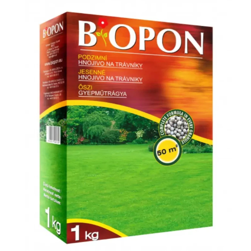 A Biopon Őszi gyeptrágya kifejezetten a gyep őszi tápanyag-utánpótlására készült granulált műtrágya. Erősíti a fűszálakat a téli időszak előtt, elősegíti a gyökérnövekedést, és egészséges, sűrű gyepet biztosít.