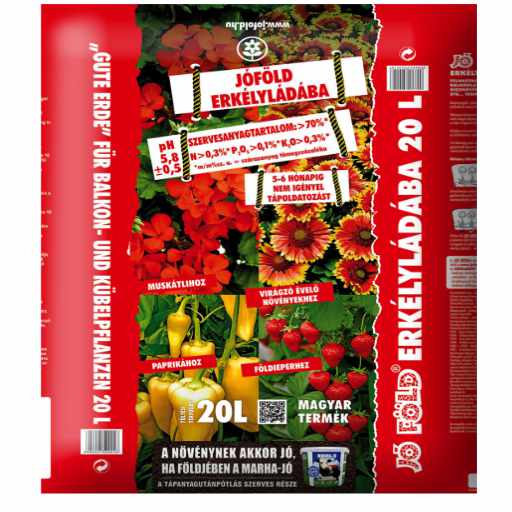 A Jó Föld erkélyládába 20 l kifejezetten balkonládás és cserepes növények számára készült földkeverék. Biztosítja a megfelelő víz- és levegőgazdálkodást, valamint támogatja a dús növekedést és a hosszan tartó virágzást.