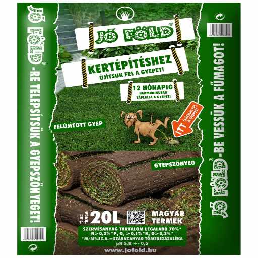 A Jó Föld kertépítéshez – újítsuk fel a gyepet speciálisan gyepfelújításhoz összeállított földkeverék. Ideális fűfelületek javításához, felülvetéshez és egyenetlen gyepterületek kiegyenlítéséhez, segítve a gyors csírázást és a sűrű gyep kialakulását.