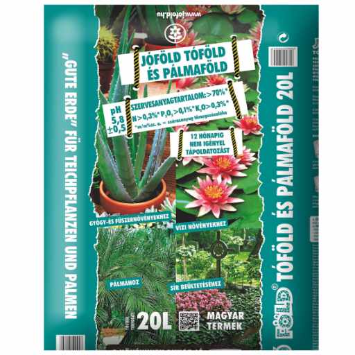 A Jó Föld tóföld és pálmaföld 20 l speciális földkeverék, amely kifejezetten vízinövények, tavi növények, valamint pálmák és nagyobb zöldnövények igényeihez készült. Stabil szerkezetének köszönhetően jól tartja a növényeket, miközben megfelelő tápanyagellátást biztosít.