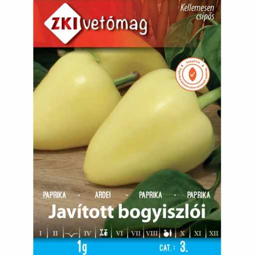 A ZKI Paprika Javított Bogyiszlói korai érésű, édes és zamatos paprika vetőmag. Erőteljes növekedésű, egészséges növény, ideális házikerti és profi termesztésre.