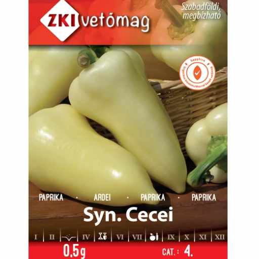 A ZKI Paprika Syn.Cecei középkorai érésű, édes és húsos paprika vetőmag. Erőteljes növekedésű, egészséges növény, ideális házikerti és profi termesztésre.
