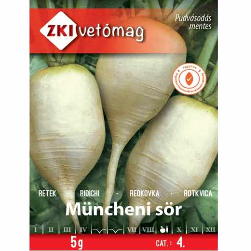 Termesztési javaslat: Vetése márciustól júniusig ajánlott, sor- és tőtávolság kb. 10–15 cm. Rendszeres szedéssel biztosítható a friss, ropogós és ízletes Müncheni sör retek termés.