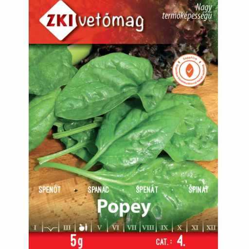 A ZKI Spenót Popey gyorsan növő, ízletes leveleket adó spenót vetőmag. Erőteljes növekedésű, egészséges, sötétzöld levelekkel rendelkező fajta, ideális házikerti és profi termesztésre.