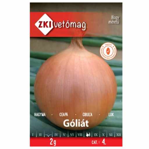 A ZKI Vetőmag Hagyma Góliát kiváló minőségű, nagy fejű, jól tárolható hagyma vetőmag. Középkorai érésű, erőteljes növekedésű fajta, ideális házikerti és profi termesztésre.