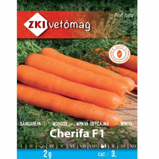 A ZKI Sárgarépa Cherifa F1 hibrid, hosszú, egyenes és édes ízű sárgarépa vetőmag. Ideális házikerti és profi termesztésre, friss fogyasztásra, főzelékekhez, levesekhez és tartósításra egyaránt.