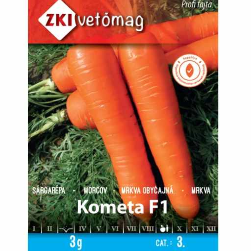 A ZKI Sárgarépa Kometa F1 hibrid, hosszú, egyenes és édes ízű sárgarépa vetőmag. Ideális házikerti és profi termesztésre, friss fogyasztásra, főzelékekhez, levesekhez és tartósításra egyaránt.