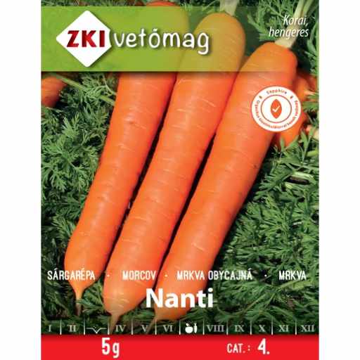 A ZKI Sárgarépa Nanti hosszú, egyenes, édes ízű gumójú, korai érésű sárgarépa vetőmag. Ideális házikerti és profi termesztésre, friss fogyasztásra, főzelékekhez, levesekhez és tartósításra egyaránt.