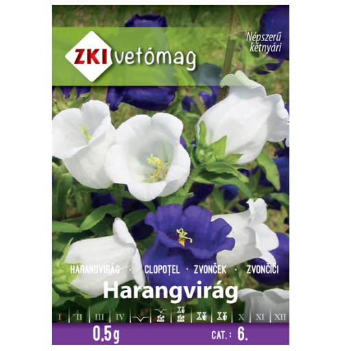 A ZKI Virág Harangvirág Színkeverék egynyári vagy évelő harangvirágok keveréke, élénk és változatos színekben. Ideális virágágyásokba, balkonládákba, konténerekbe, valamint kertek és parkok díszítésére, látványos harangvirág virágzással.